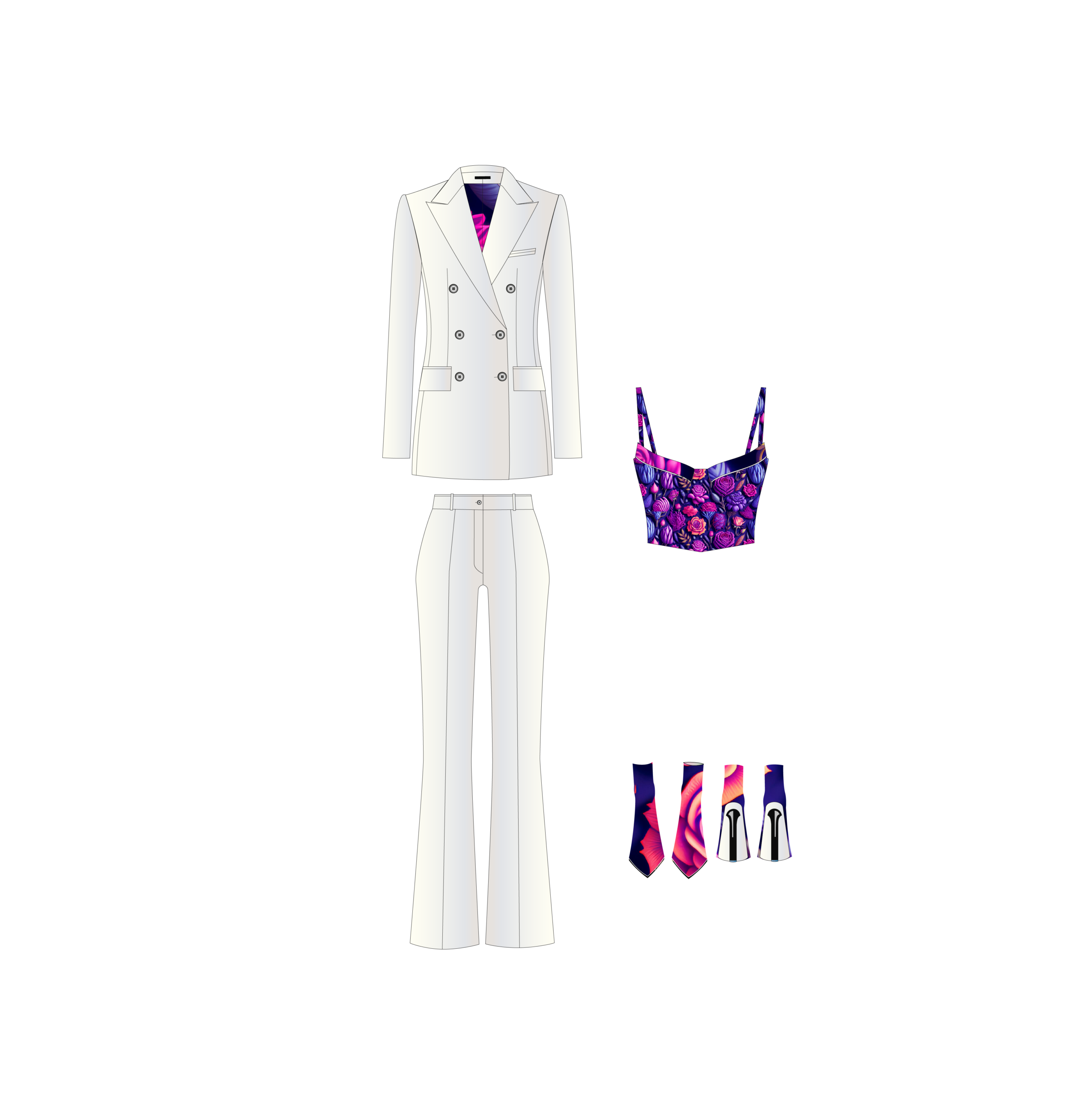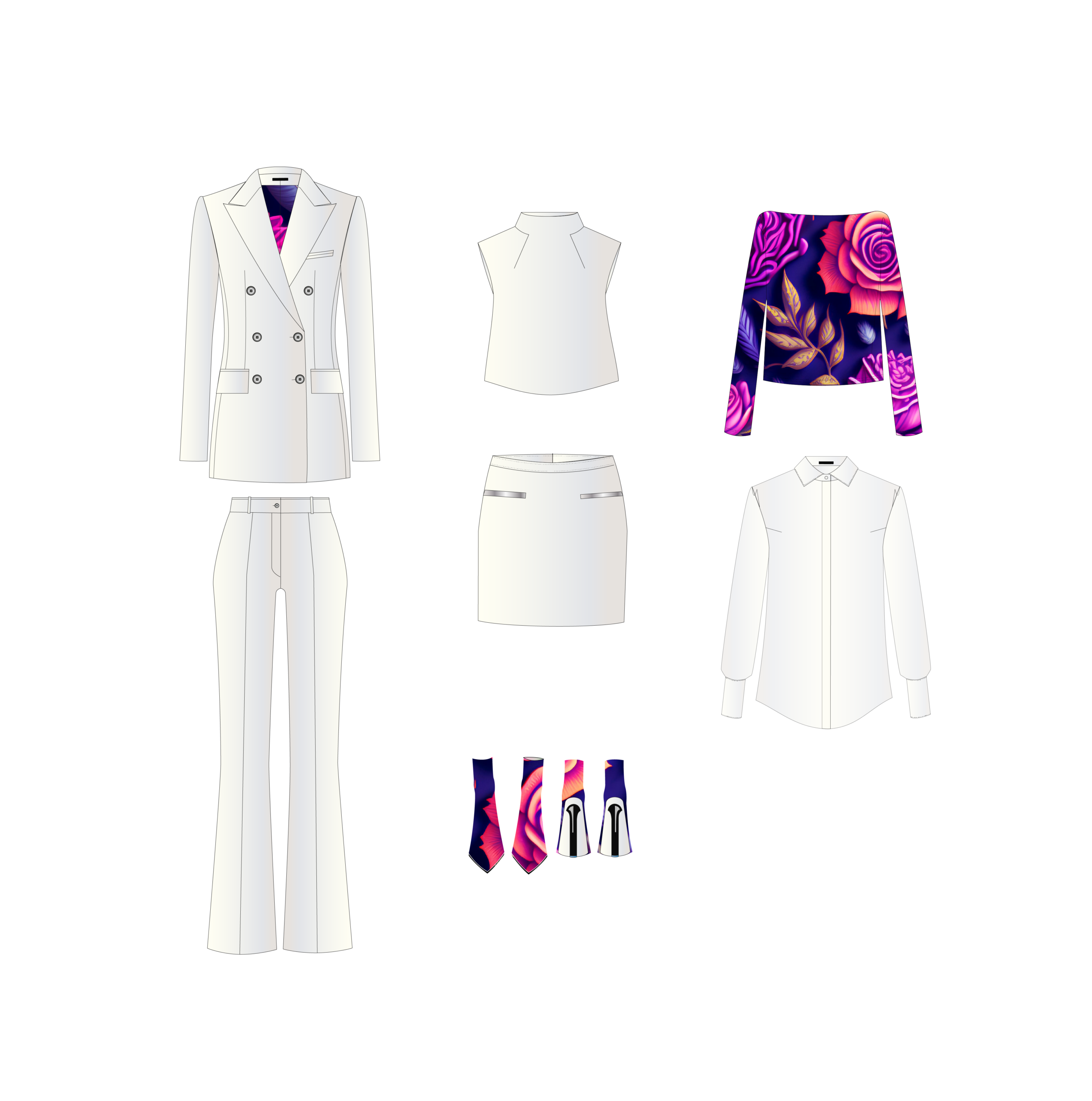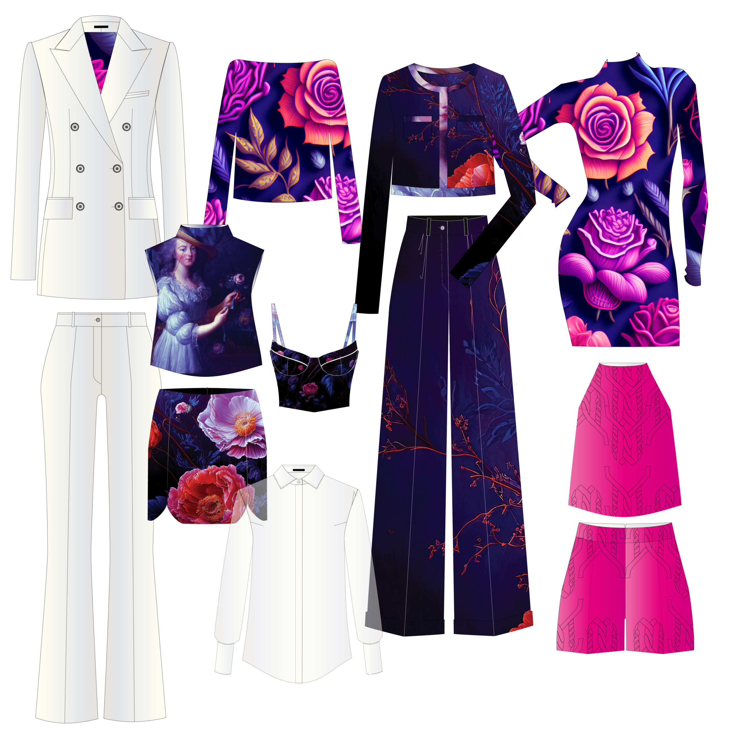 Jedes Modell – von Prêt-à-Porter bis zu künstlerischen Prints – wird individuell gefertigt. Schnitt, Material und Funktion greifen präzise ineinander und folgen den persönlichen Vorgaben der Kundin.